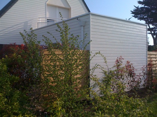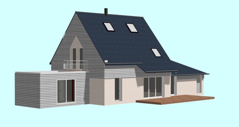 Création d'une petite extension composée d'une chambre avec placard et d'une salle de bain avec WC. Réalisation en ossature bois avec toiture terrasse.